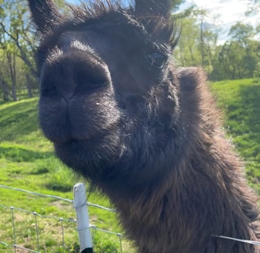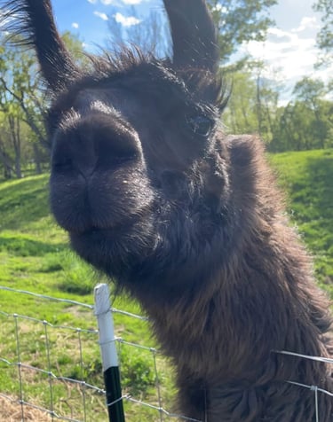 Stanley the Guardian: Our resident llama who protects the does and kids from predators day and night. (Just watch out—he's known to spit if he’s in a bad mood!).